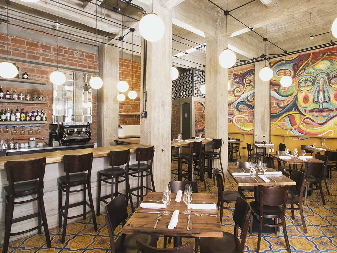 Platillos con influencia española y bajacaliforniana, lo que suele implicar una hábil combincación en el plato de productos de mar y tierra —como se aprecia en su tártara de res con sardina, mayonesa de alcaparra y papa—, es lo que ofrece este lugar a cargo de Jair Téllez, chef de reconocido prestigio nacional que también tiene a su cargio el restaurante Merotoro, en la cercana colonia Condesa. Su carta de vinos es totalmente mexicana, e incluye etiquetas de la bodega Bianchi, del propio Téllez.