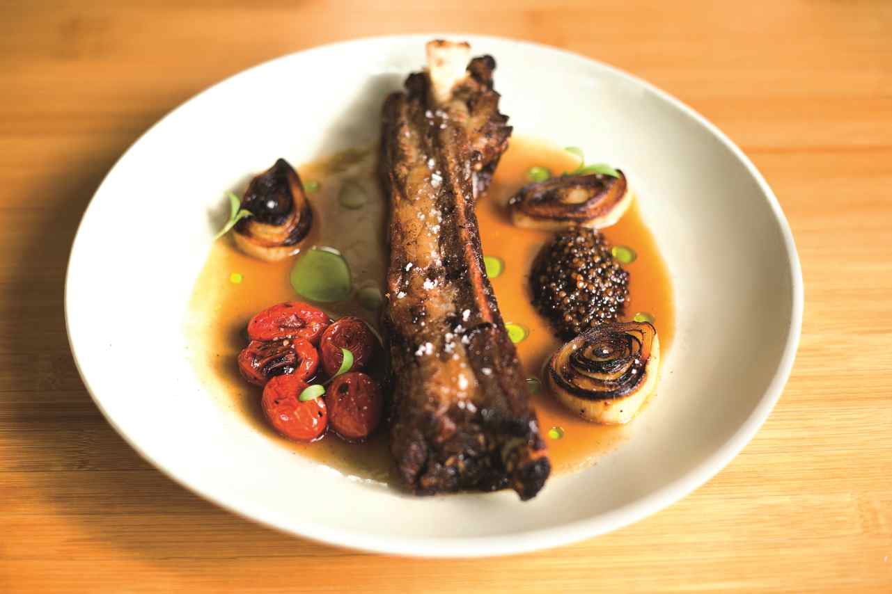 Comida “mexi-terránea, así nombró el afamado chef Guy Santoro su concepto dispuesto en el restaurante abierto en la planta baja del hotel Galería Plaza Reforma, donde los ingredientes nacionales —aguacates, tomate, chiles secos y hierbas de olor— se integran a recetas tradicionales de Francia, Italia, España y el norte de África. Para lo anterior dispone de una pasta con camarones, calabaza, pesto y jitomate cherry, o su lechón lechal confitado con frutos secos, pera al vino tinto, camote y apio confitado.